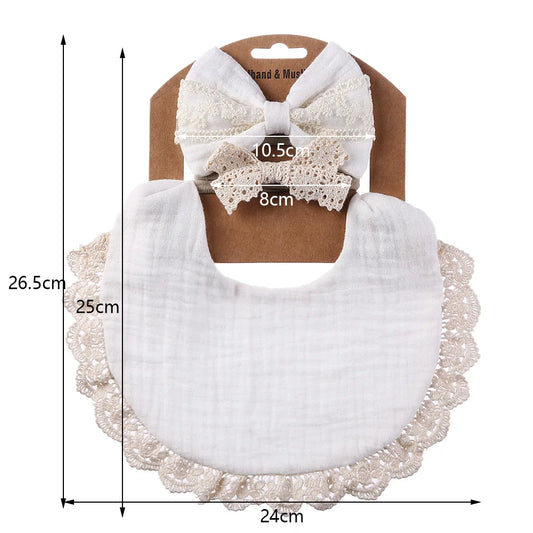 Cotton Baby Bib Bow Headband Adjustable Girl Feeding Bib