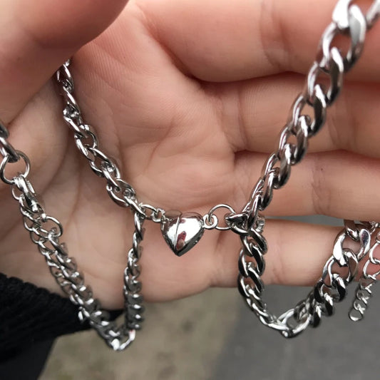 Silver Color Love Heart Magnet Couple Bracelets for Women Men Double Layer