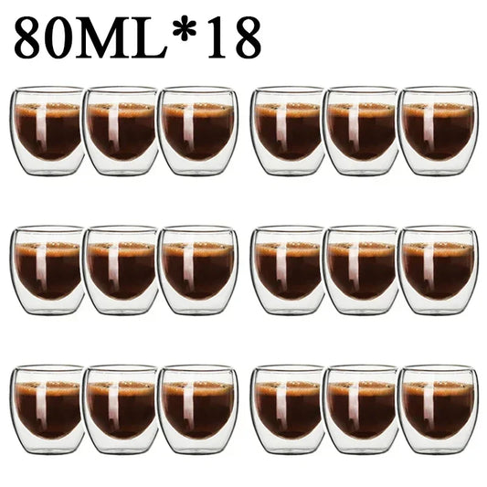 18PCS Heat-Resistant Double Wall Glass Mugs
