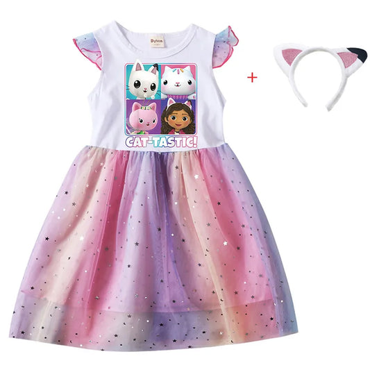 Baby Girls Cartoon Dress - Star Sequins Kids Flying Sleeve Skirt