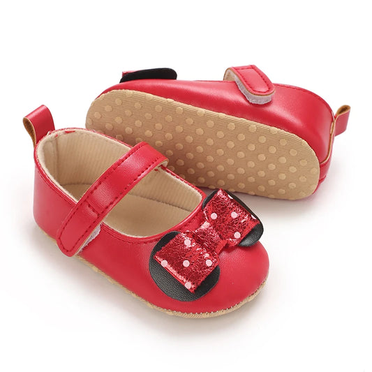 Newborn Baby Infant PU Anti-slip Bowknot Classic Princess Shoes