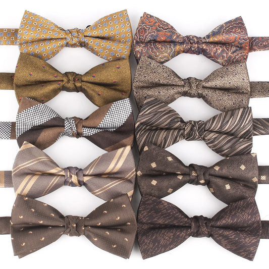 Dark Colors Bow Tie Set with Pocket Squares & Cufflinks