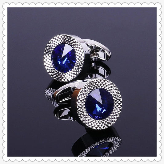 Crystal Round Cufflinks for Men's Tuxedo Formal Dress
