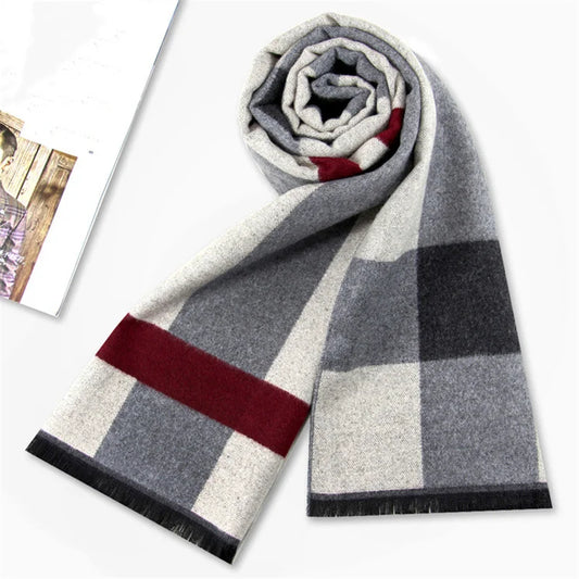 Plaid Cashmere Winter Scarf for Men