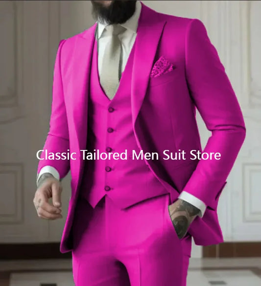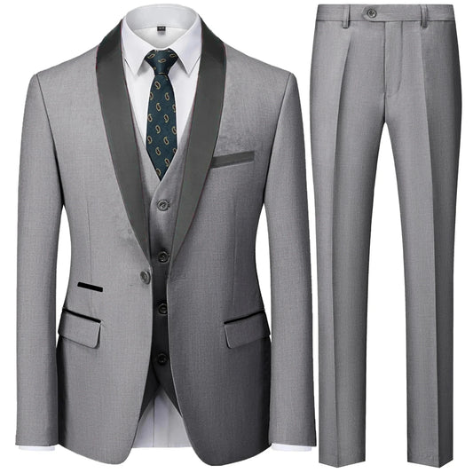 3 Pieces Set Men's Business Blazers Coat - Slim Fit Color Matching Collar Suit Jacket Pants Vest