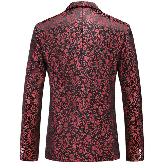 2-Piece Men’s Nightclub Blazer Set - Double-Sided Flower Suit