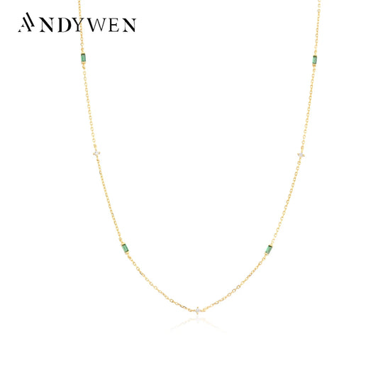 925 Sterling Silver & Gold Green Zircon Choker Necklace