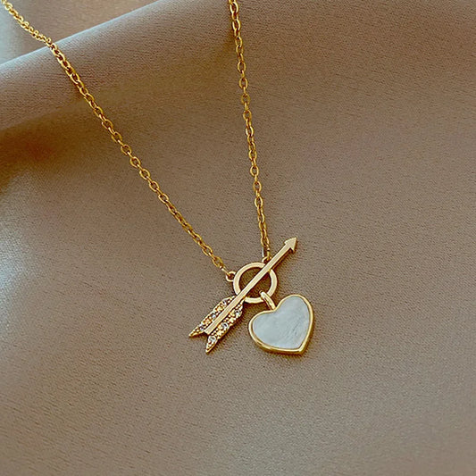 Alloy Heart-shaped Necklace With Diamond INS Style