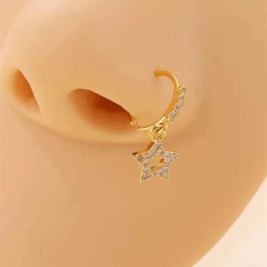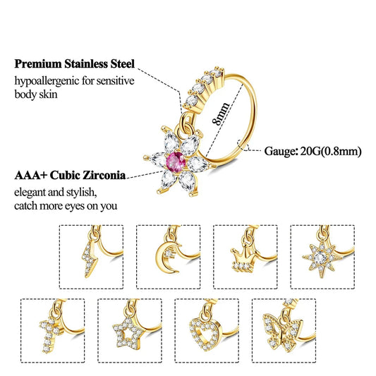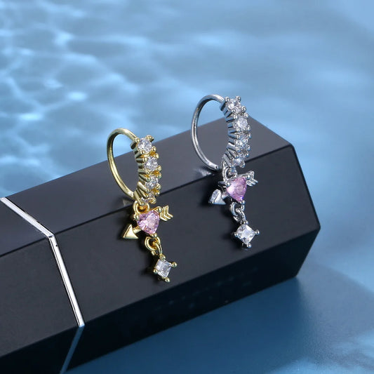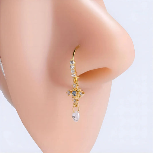 High-Quality CZ Heart Dangle Nose Rings for Women