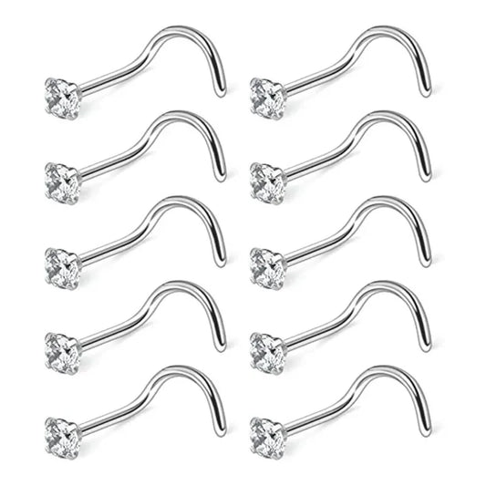 Versatile CZ Zircon Nose Studs- 10-Piece Set