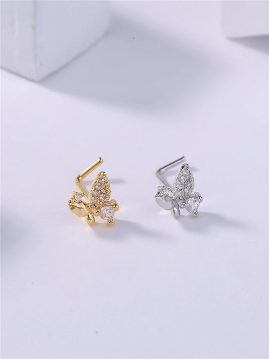 Cute Butterfly L-Shaped Nose Stud in Gold/Silver