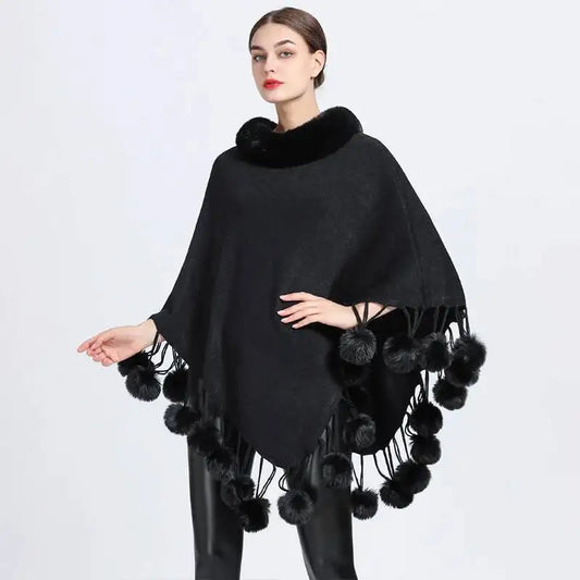 Fur Collar Knitted Shawl Cloak Wrap