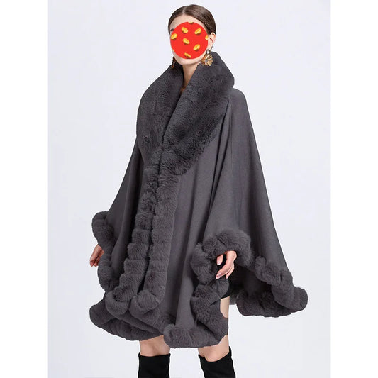 Women Cape Cloak Faux Fur Shawl
