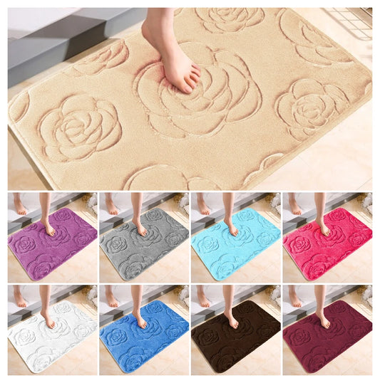 Fleece Embossed Stone Bathroom Floor Mat Water Absorbing and Foot Mat Non-slip Bathroom Floor Door Mat Supplies