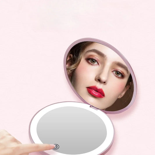 LED Pocket Mirror with 1X/10X Magnification & USB Charging