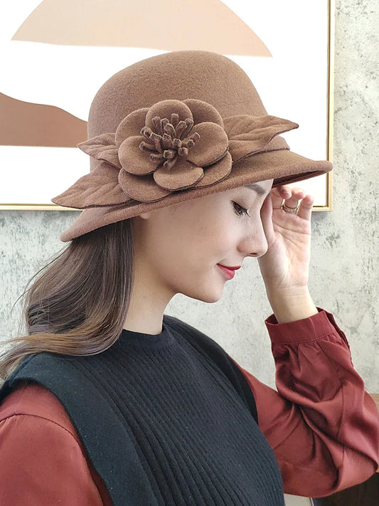 Woolen Warm Dome Flowers Fedora Hat