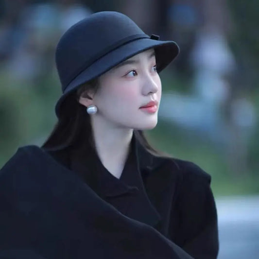 Winter Wool Flat Top bows Jazz Hat For Women