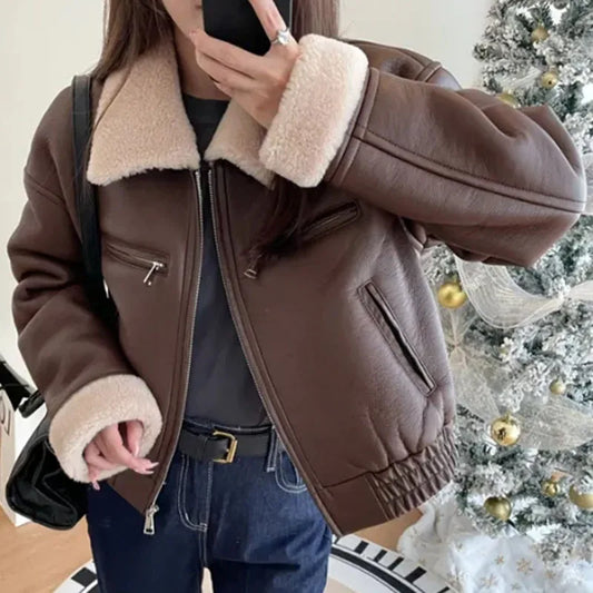 Women's Faux Lamb Thick Warm Leather Fur Short Jackets