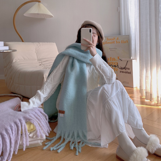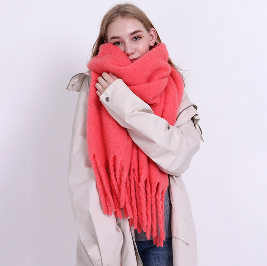 Pure Color Thick Beard Cashmere Scarf