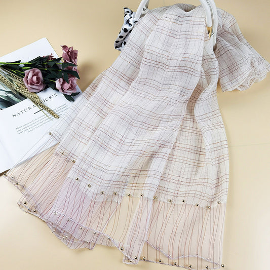 Chain Scarf Stripes Thin Decorative Sunscreen Shawl