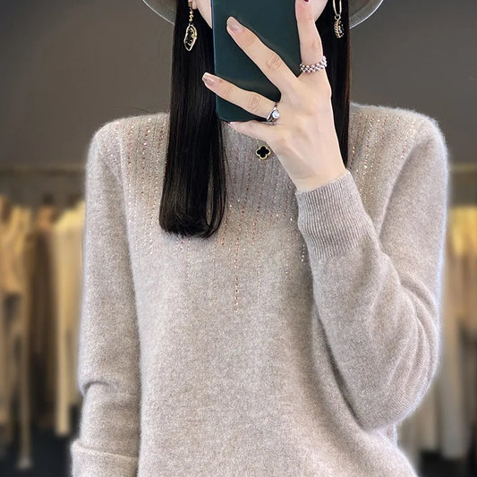 Round Neck Hot Drilled Long Sleeve Loose Women's Sweater