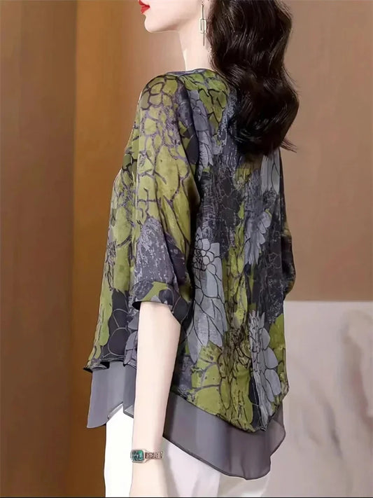 Women's Crew Neck Printed Long Sleeve Loose Sweater