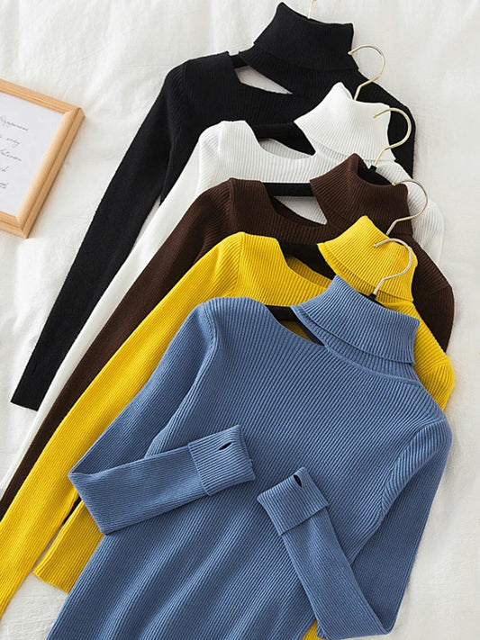 Women Turtleneck Sweater Slim Warm Knit Top