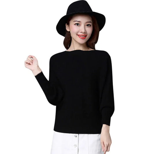 Women Winter Batwing Sleeve Jumper Slash Neck Sweater