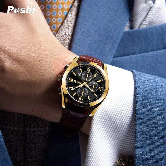 Wasserdichte Herren-Sportuhr mit Kalenderwerk und Lederarmband