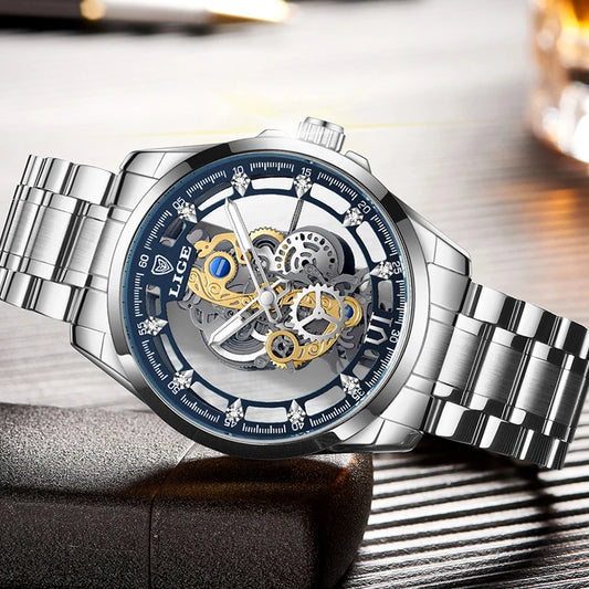Retro-Gold-Skelett-Herrenarmbanduhr
