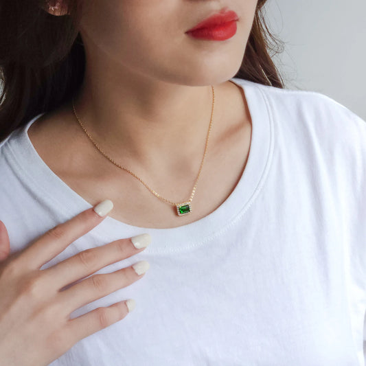 Halskette aus 925er-Sterlingsilber und Gold mit grünem Zirkon
