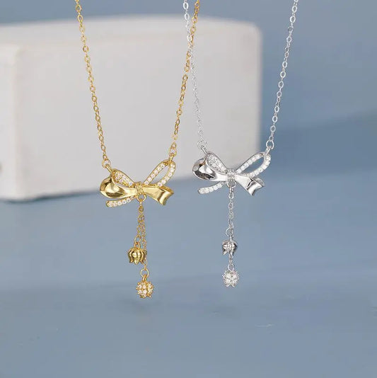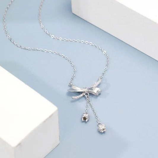 Silberfarbene Halskette mit langer Schleife und Quastenanhänger