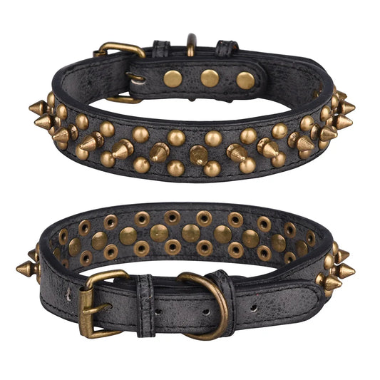 Verstellbares Hundehalsband aus Leder mit Nieten, Beißschutz