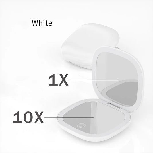 Mini-Schminkspiegel, tragbar, zusammenklappbar, mit LED und Vergrößerung