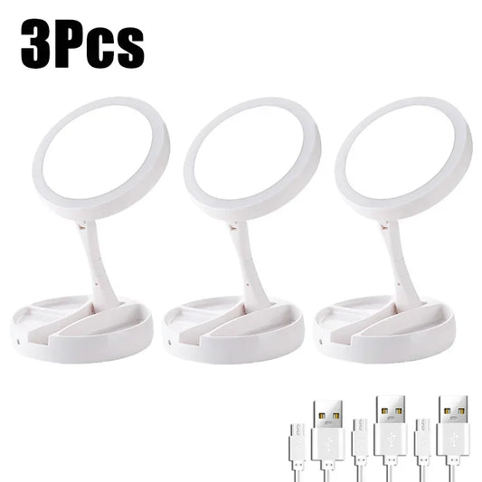 LED-Schminkspiegel mit 360°-Drehung und USB-Ladegerät