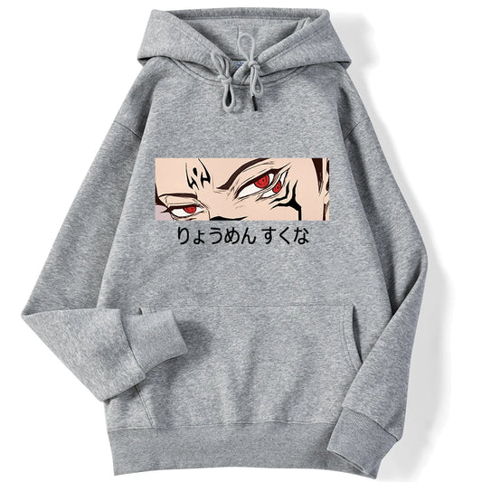 Lässiger Anime-Kapuzenpullover mit Ryomen-Sukuna-Aufdruck für Damen