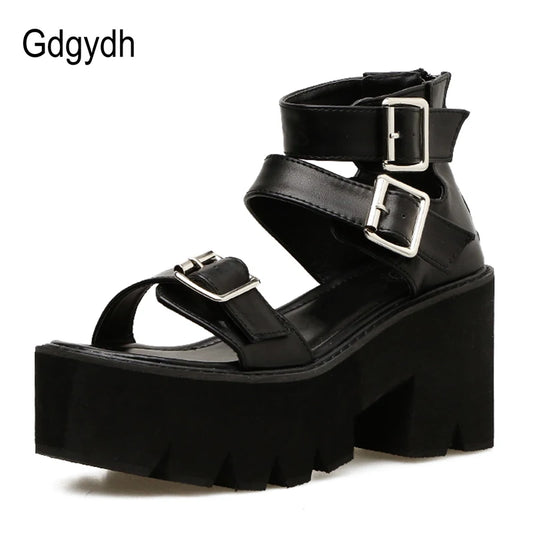 Damen-Sandalen mit Knöchelriemen, offener Zehenpartie und Plateausohle und dicken Absätzen