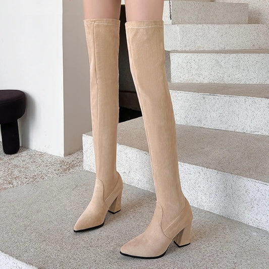 Sexy Damen-Stiefel aus Wildleder mit hohem Absatz und Schnürung am Oberschenkel