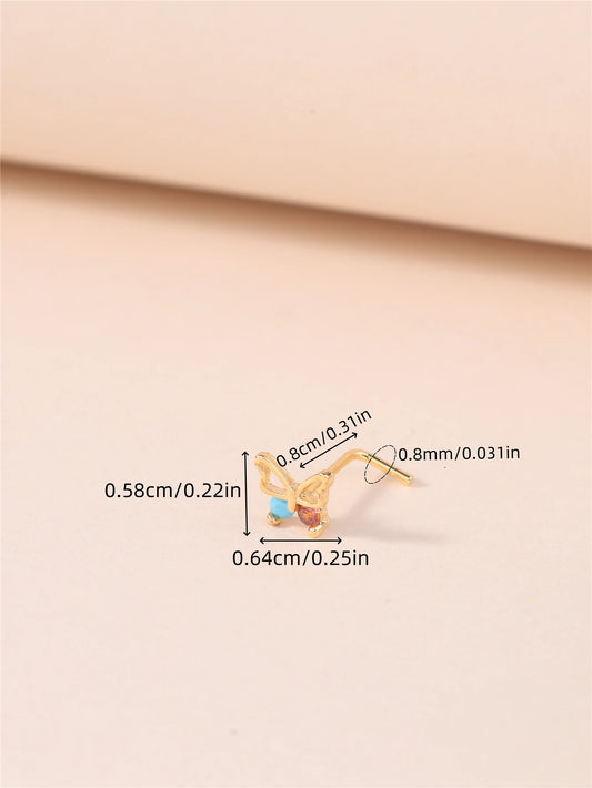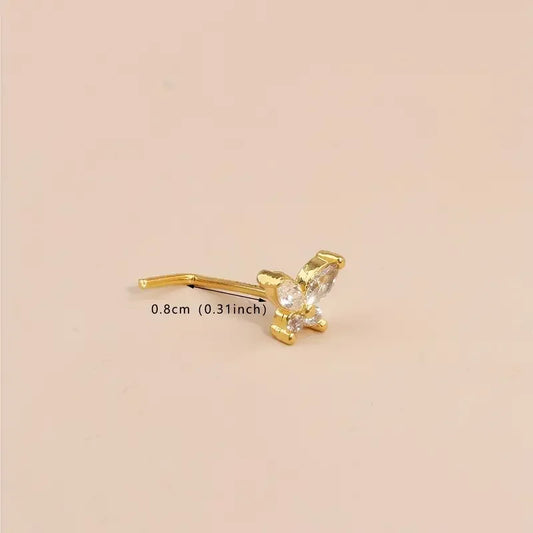 L-förmiger Nasenstecker im Schmetterlingsdesign mit CZ