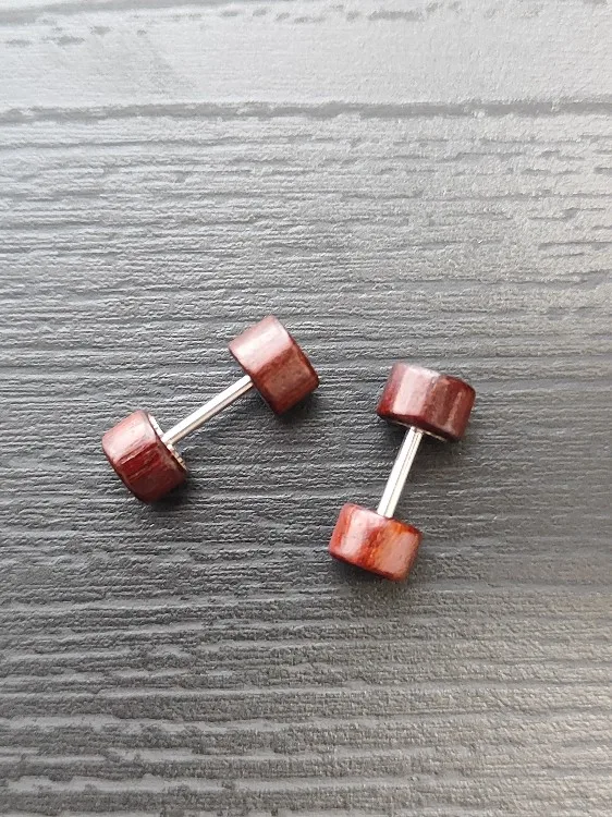 They are very pretty although the color seems almost black when viewed from the top. Real wood. I just wish i took bigger diameter, i didn't think they would be sooo small.