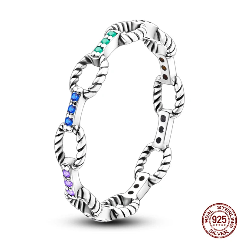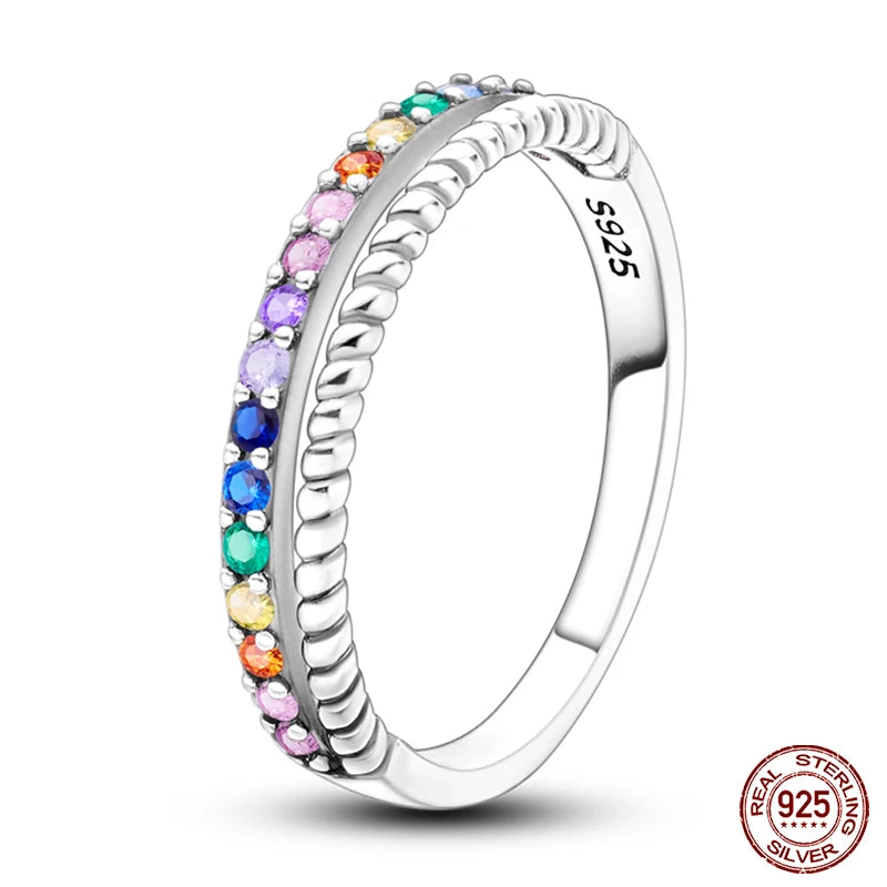 925 Sterling Silber Stern Mond Ringe mit Bunten Zirkon