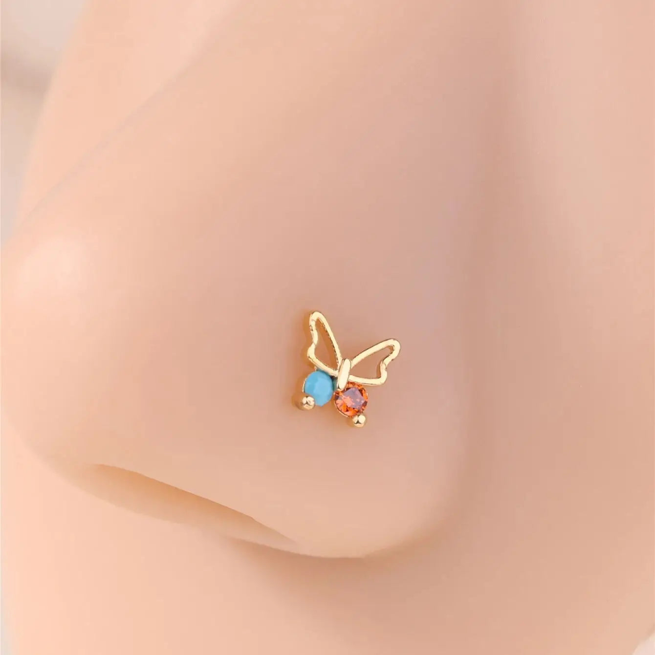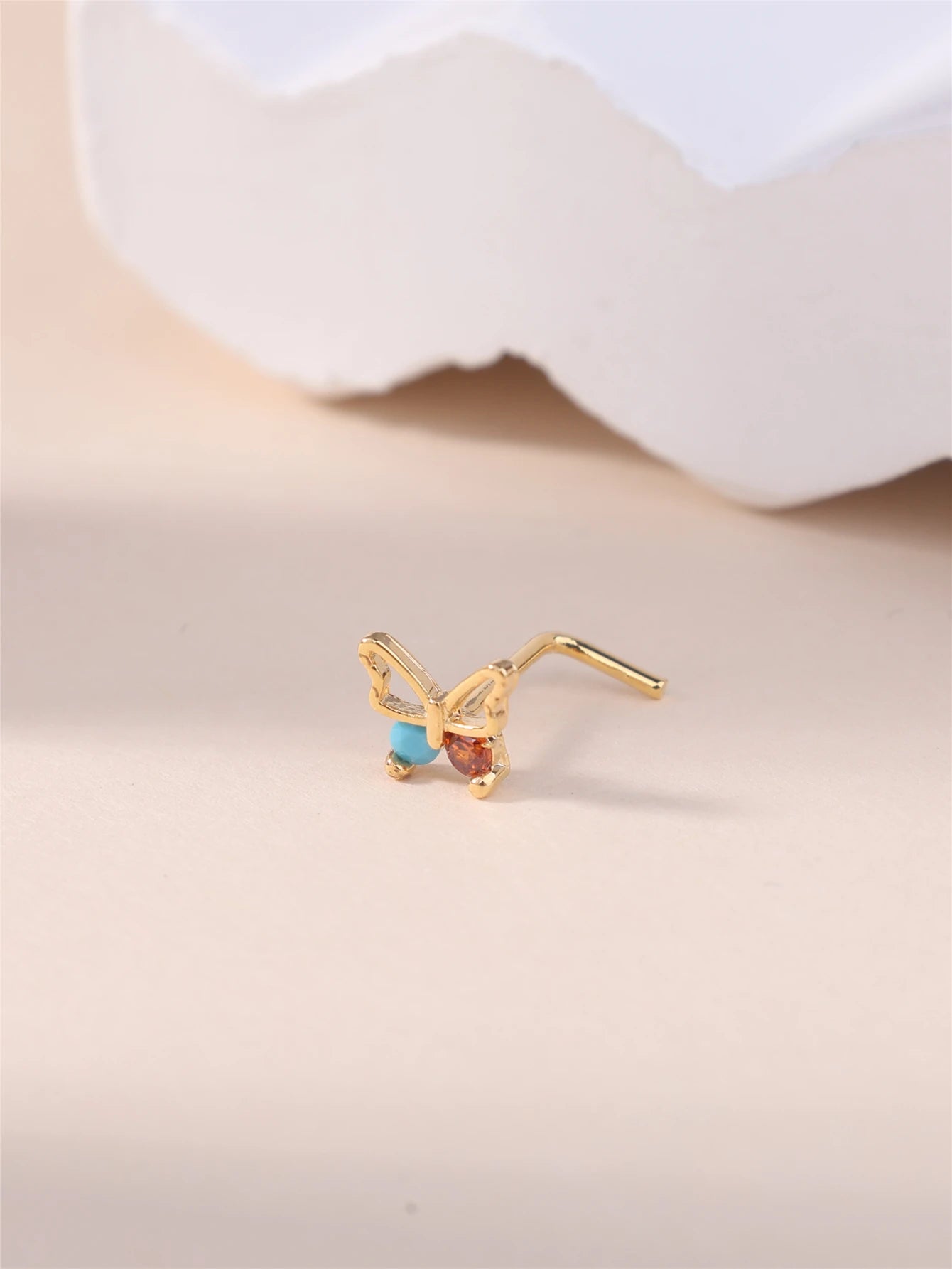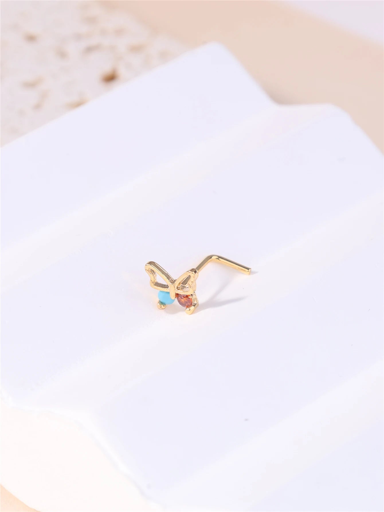 L-förmiger Nasenstecker im Schmetterlingsdesign mit CZ