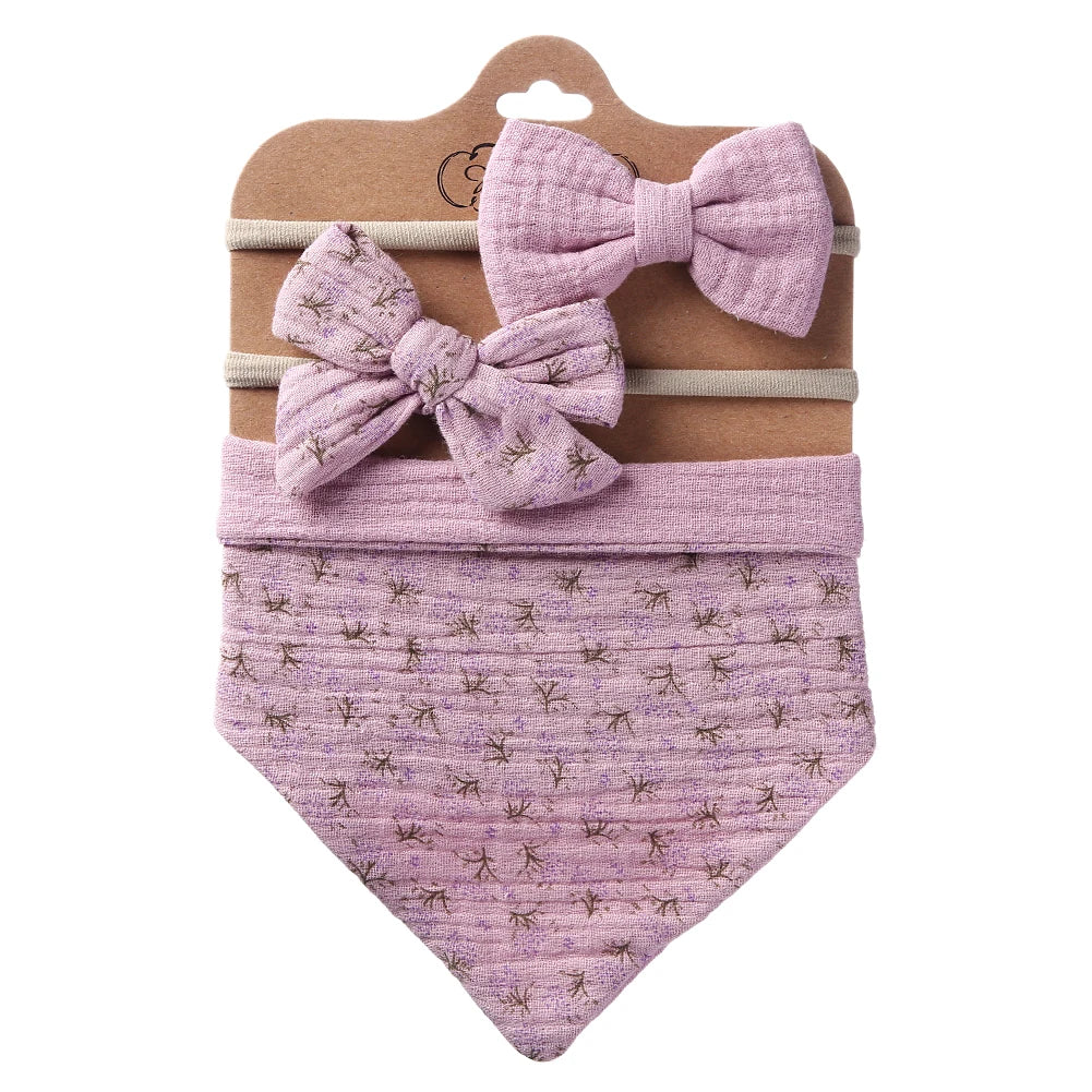 Baby-Lätzchen aus Baumwolle mit Schleife und Stirnband, verstellbares Lätzchen für Mädchen