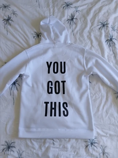 Great service and great communication. I got exactly what i wanted. The hoody is polyester - which is good for rain. I bought for snowboarding. I'm fat and old so wanted a positive message for people over taking me on the slope 😂 I'm a nz/australia women's size 14. I got an xxl. I would describe as slim fit. The hoodie is long and not so much wide.