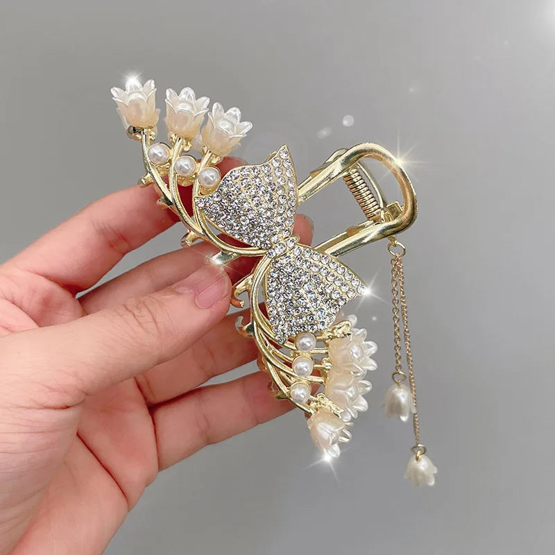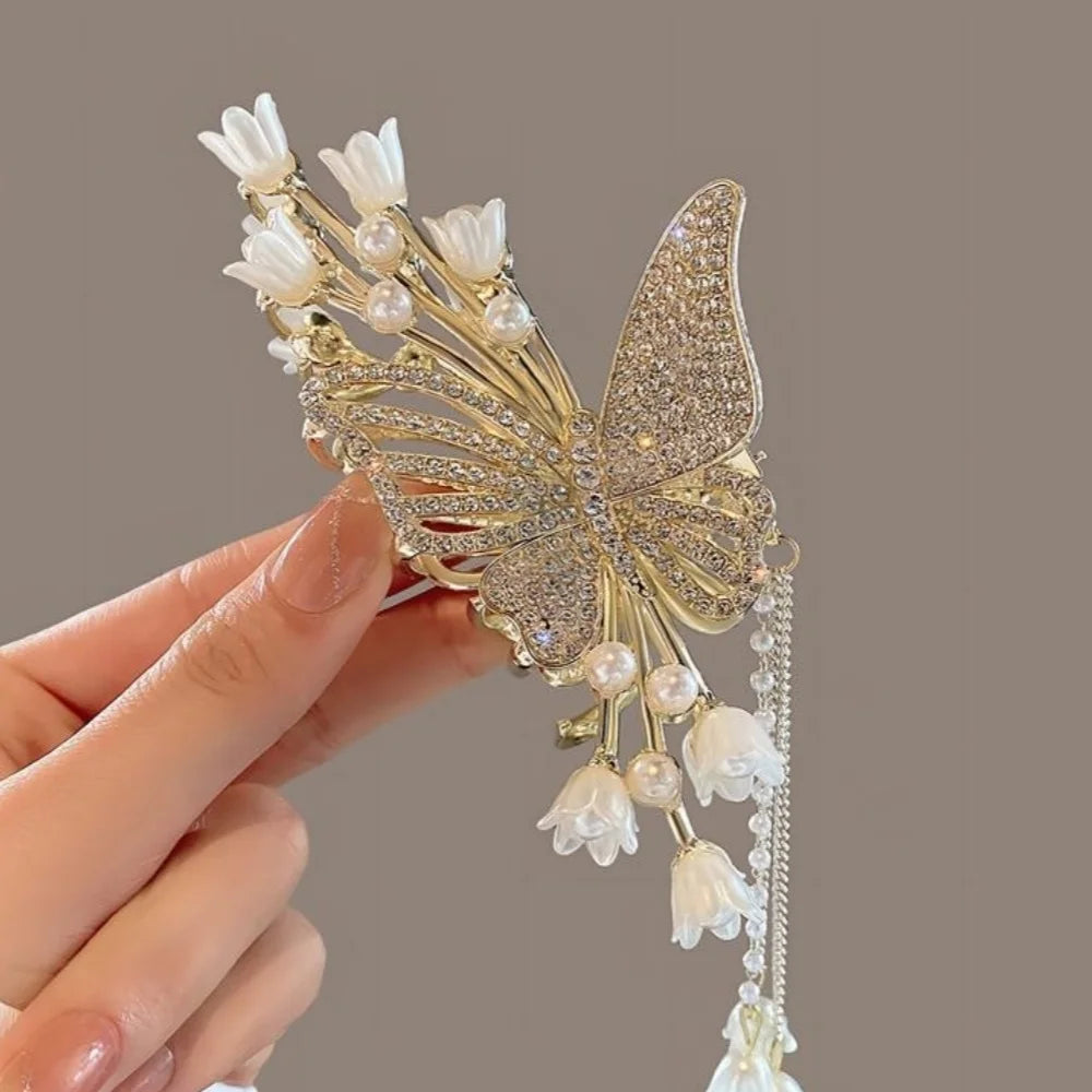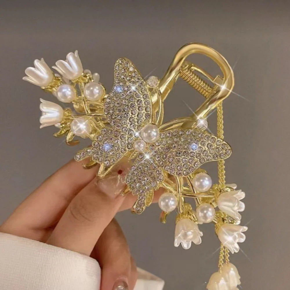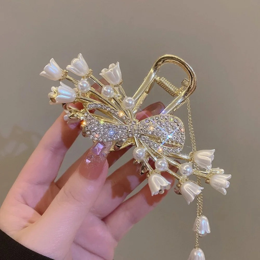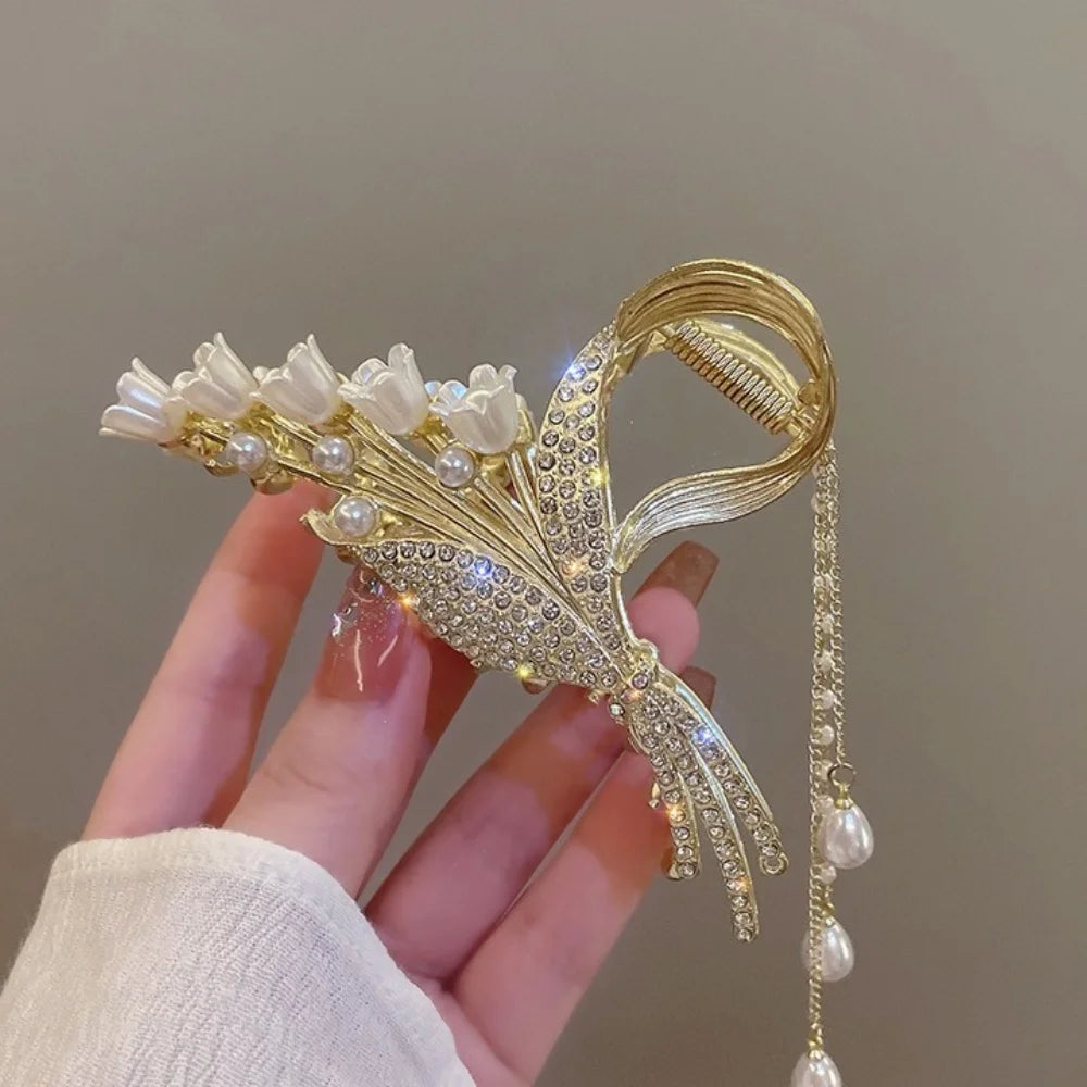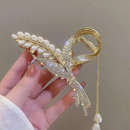 Elegante Perlen-Quasten-Haarnadel, gekräuselte Haarspange