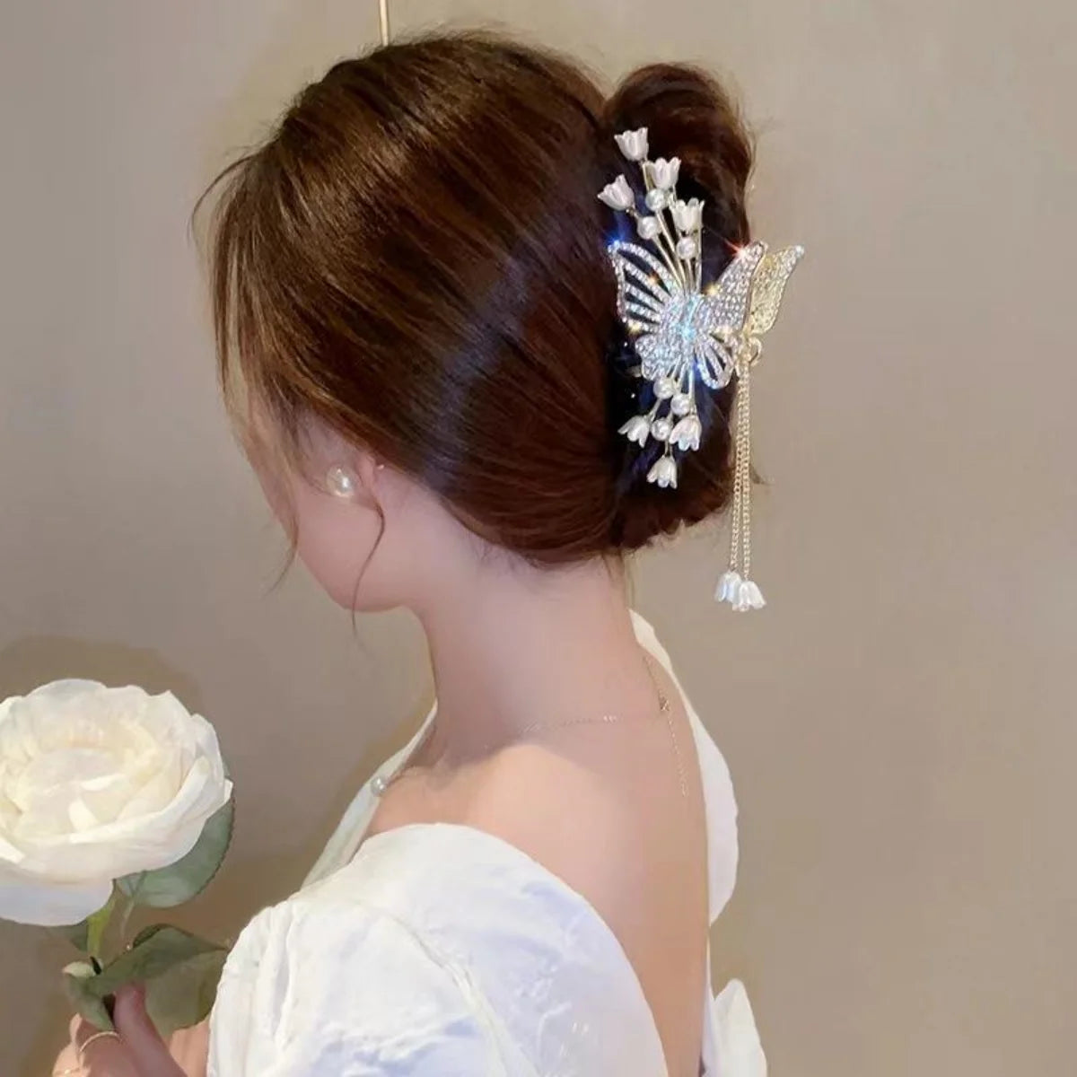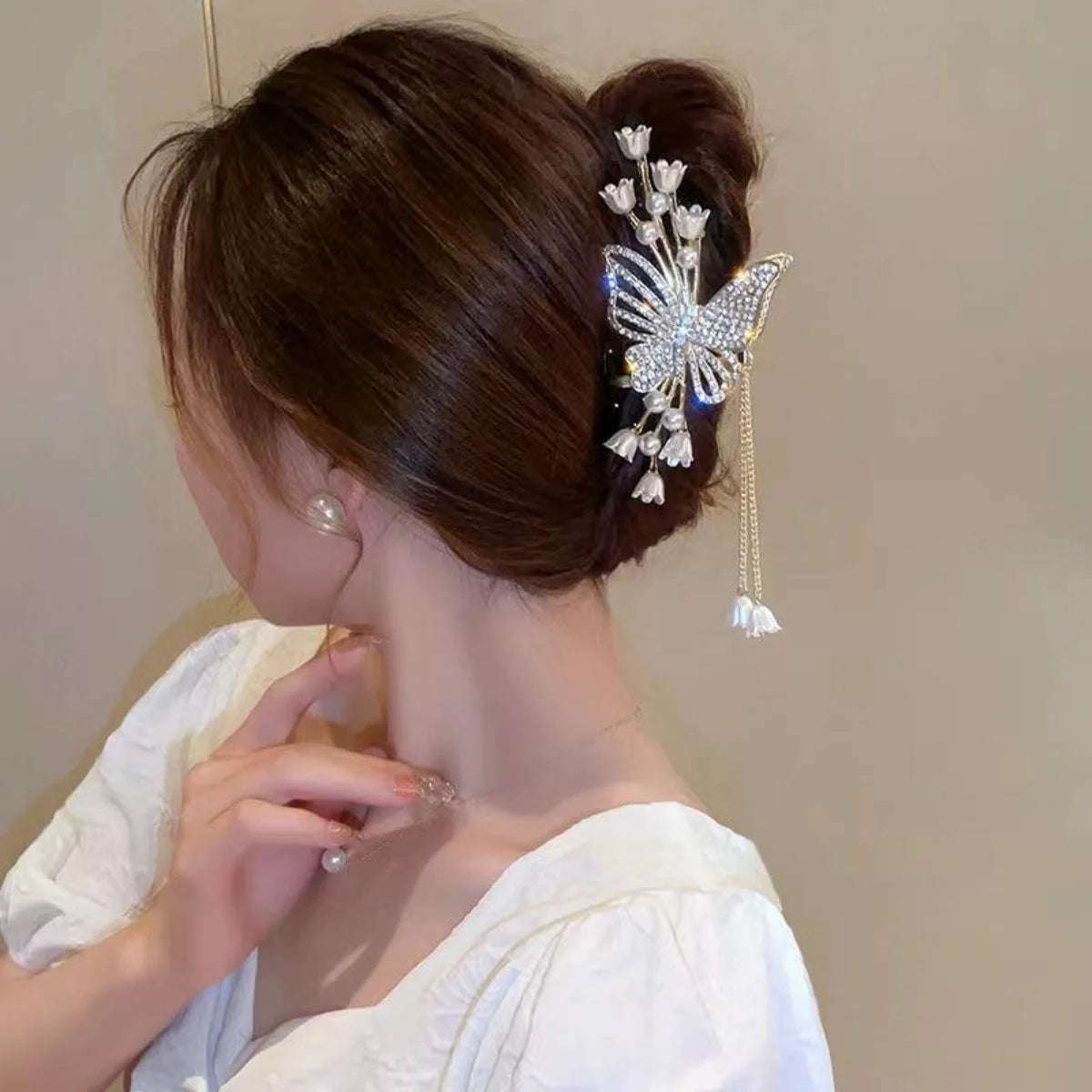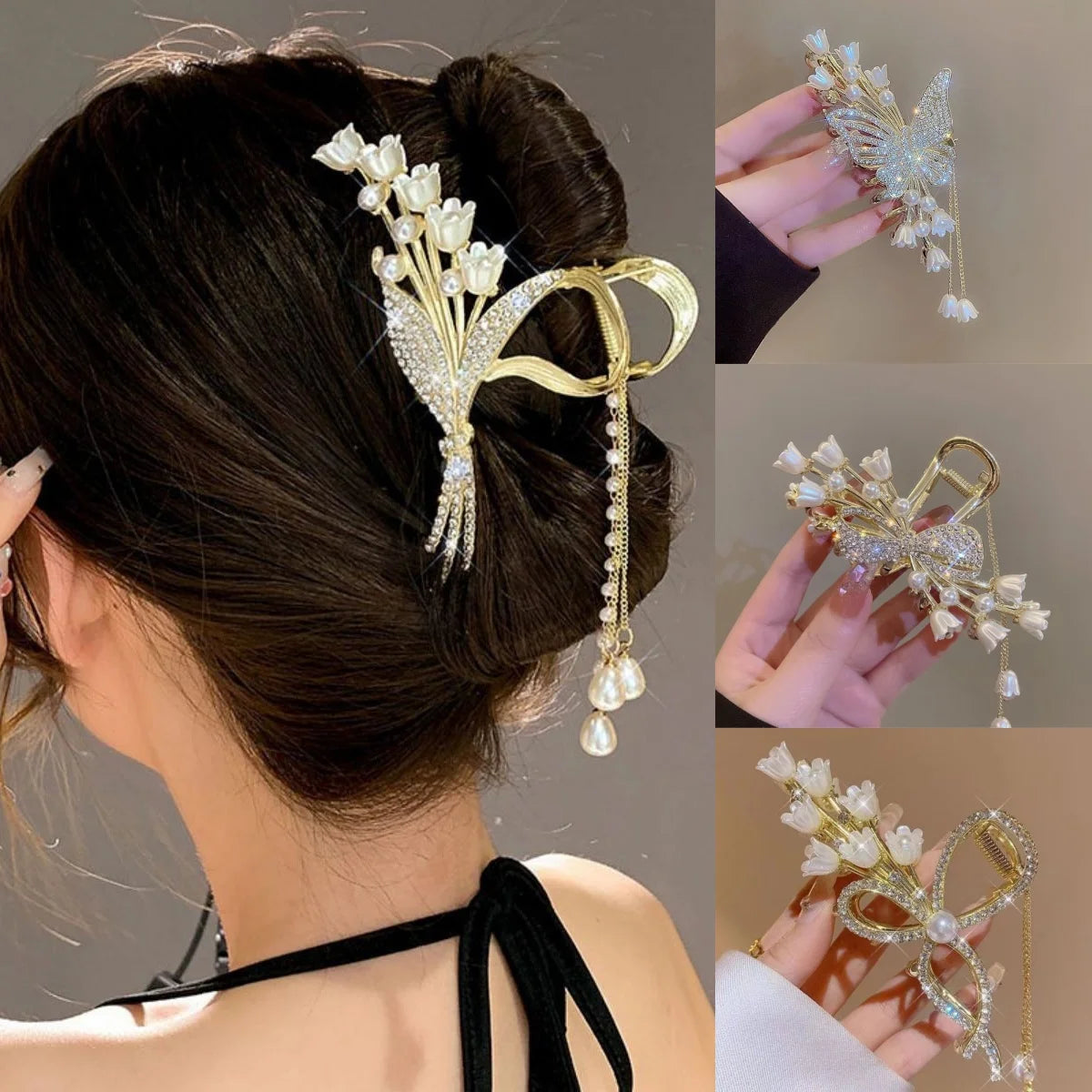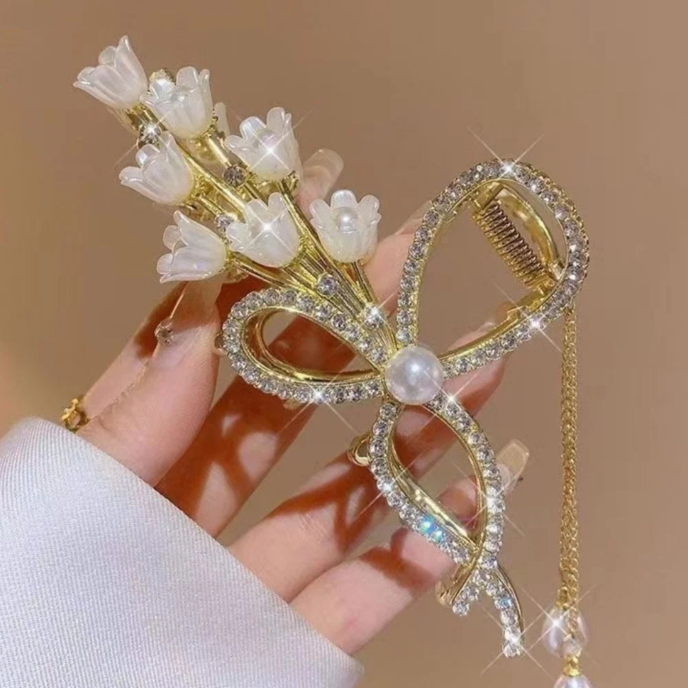 Elegante Perlen-Quasten-Haarnadel, gekräuselte Haarspange
