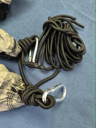 Les Corkery Smaller hammock than i’ve bought previously, but sufficient especially if you prioritize compact storage. If you’re taller than 5’9”, it is probably too small to lay in. And the carabiners are sturdy but lots of sharp bits on the clasp that snag on any larger rigging cords you may use. Otherwise good.