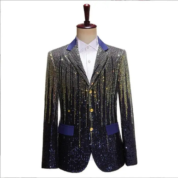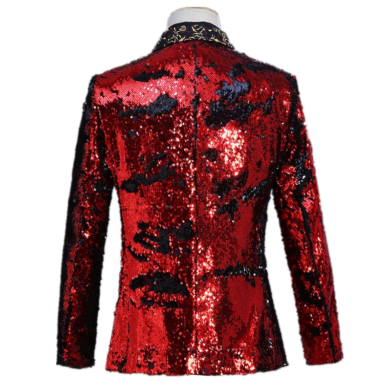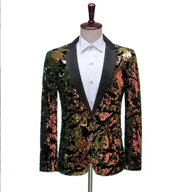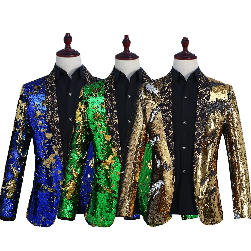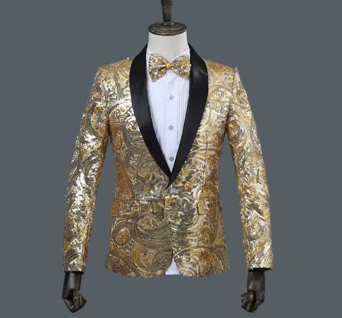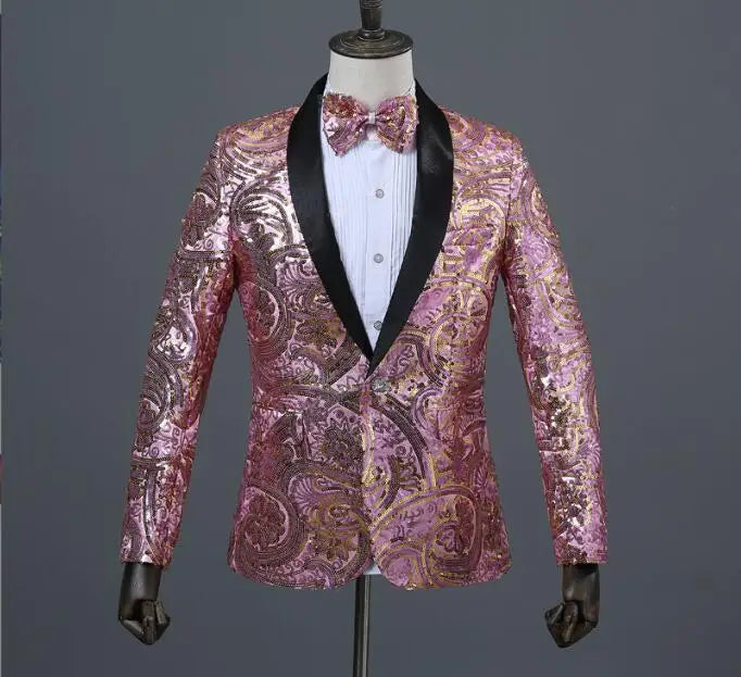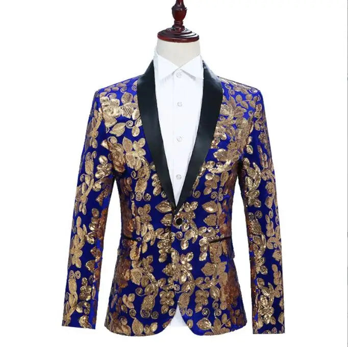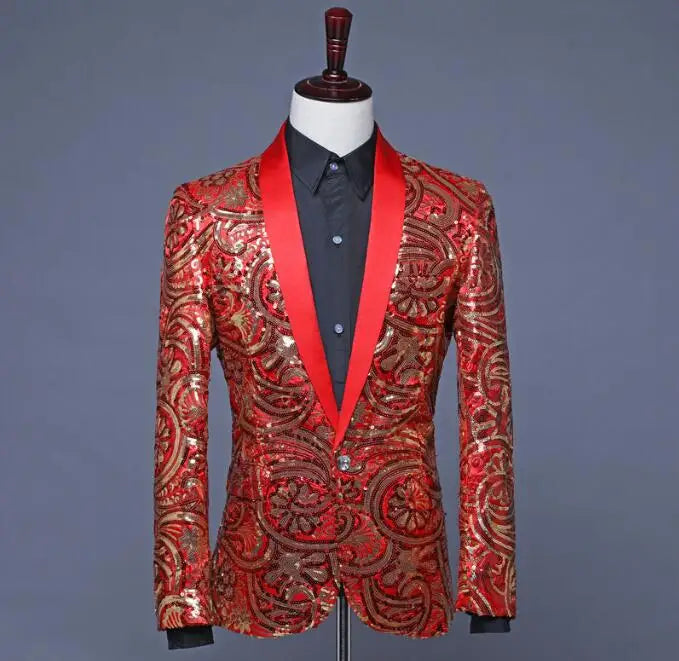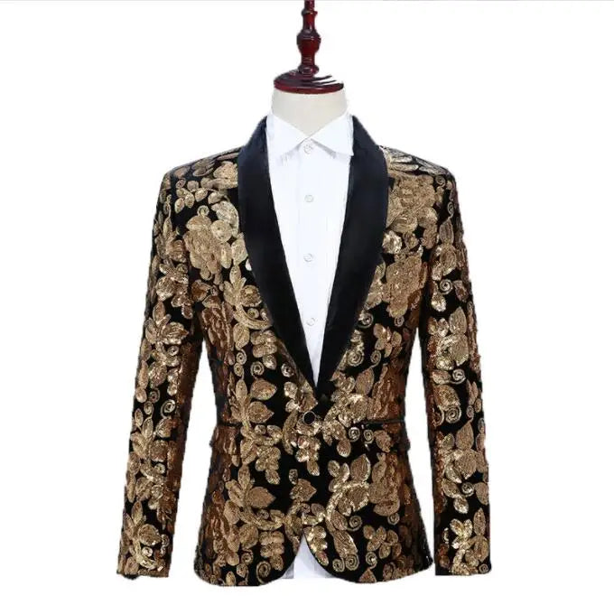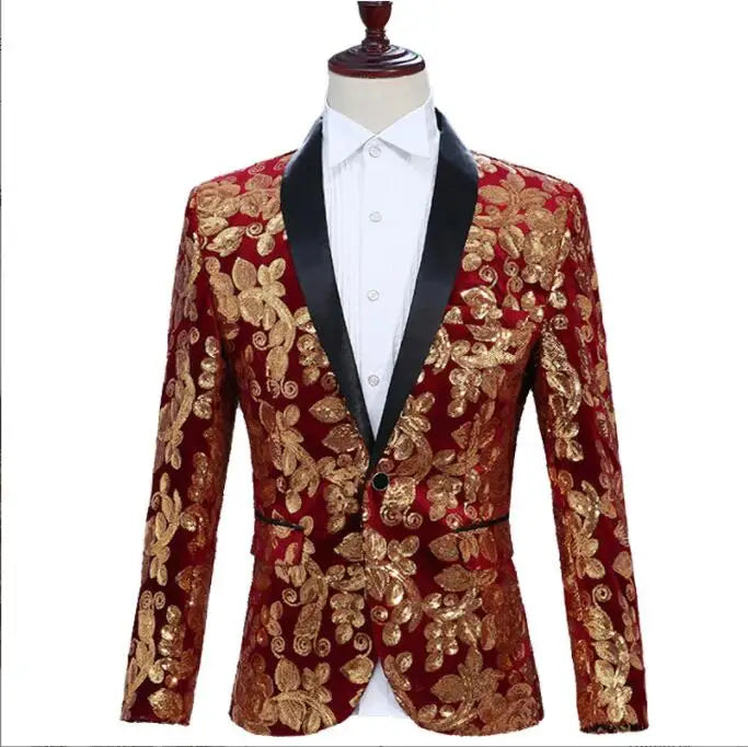 Flacher, heißer, mit Gold besetzter Herrenanzug aus Samt, 2-teiliges Set – Hochzeitsbankettkleid mit Hose