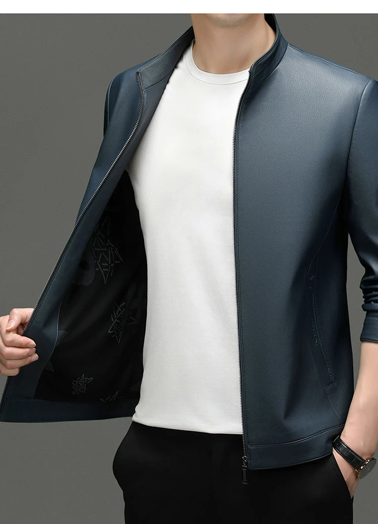 Kleidung aus echtem Leder – Herren-Lederjacke mit Stehkragen