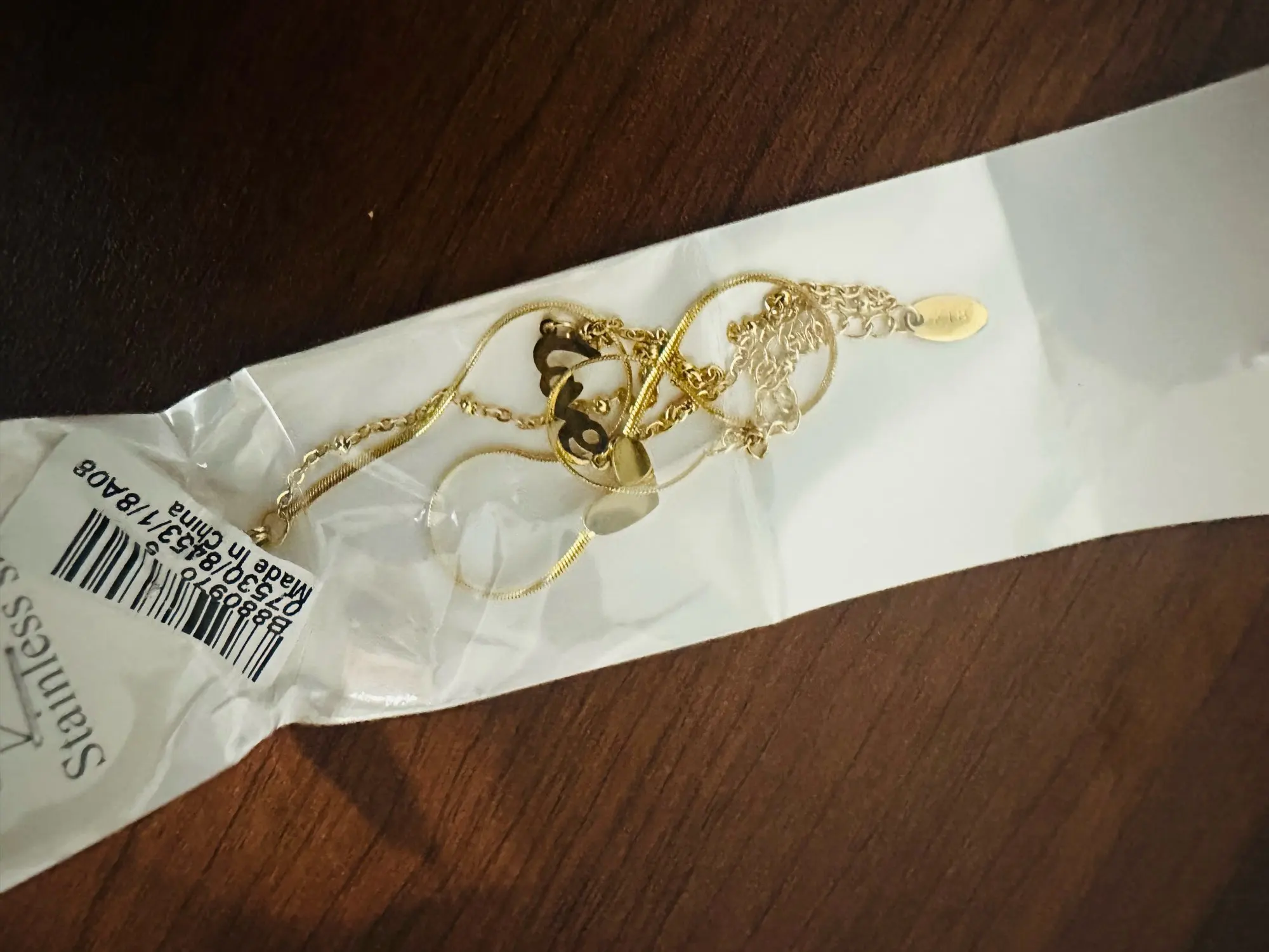 Goldfarbenes, doppellagiges Herz-Liebesbrief-Fußkettchen